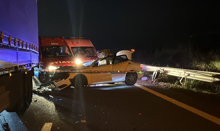 Anadolu Otoyolu'nun Bolu kesiminde tıra çarpan otomobilde bulunan 2 kişi hayatını kaybetti.