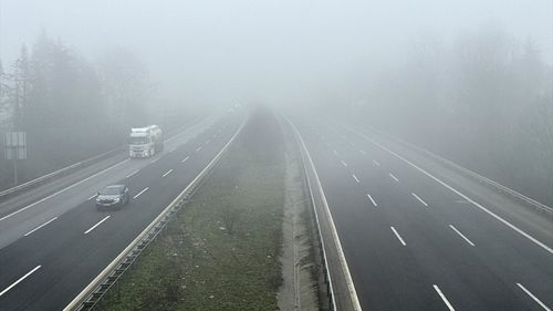 Düzce kesiminde etkili olan sis, görüş mesafesini düşürdü ve sürücüleri uyardı.