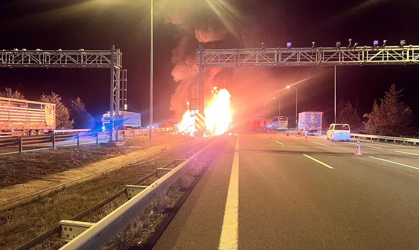 Düzce kesiminde meydana gelen bir kaza, Anadolu Otoyolu'nda tırda çıkan yangınla sonuçlandı. Olay, Kent Güvenlik Yönetim Sistemi (KGYS) kameraları tarafından kaydedildi.