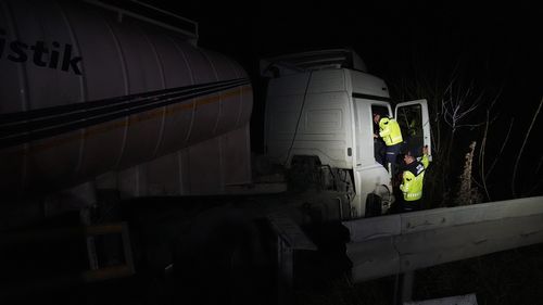 Anadolu Otoyolu'nda Tırın Şarampole Devrilmesi Sonucu Sürücü Yaralandı
