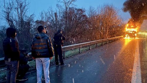 Düzce'de, Anadolu Otoyolu'nda seyir halindeyken yanan tır kullanılmaz hale geldi. Ulaşımda aksama yaşandı.