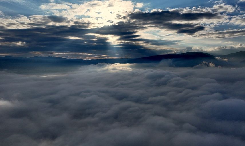Anadolu Otoyolu'nun Düzce kesiminde etkili olan sis, görüş mesafesini düşürdü. Düzce Ovası'nın kuzey ve güney kısımlarında sisin hakim olduğu ve sis tabakasının kapladığı ova ile otoyoldaki trafik akışı, havadan görüntülendi.