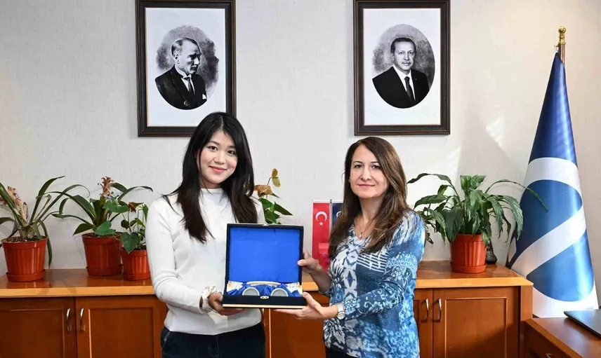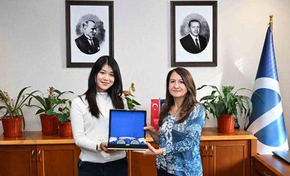 ÇİN HALK CUMHURİYETİ’NDEN ÇİNCE DERSLERİ VERMEK ÜZERE ANADOLU ÜNİVERSİTESİ’NE GELEN ÖĞRETİM ELEMANI YİFAN WANG, ANADOLU ÜNİVERSİTESİ REKTÖR YARDIMCISI PROF. DR. SERPİL KOÇDAR’I MAKAMINDA ZİYARET ETTİ.