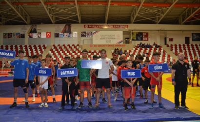 Muş'ta gerçekleştirilen Anadolu Yıldızlar Ligi 1. Etap 4. Grup Güreş Müsabakaları, 250 sporcunun katılımıyla başladı.
