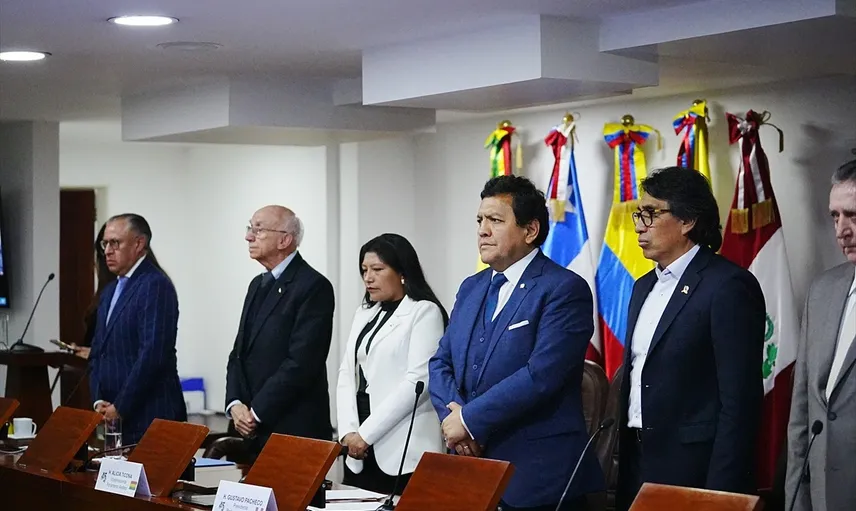 Başkent Bogota'daki And Parlamentosu binasında düzenlenen törenin açılışında, And Parlamentosu Başkanı Gustavo Pacheco, yapılacak olan saygı duruşunu haber vererek şu ifadeleri kullandı: