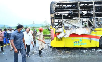Hindistan'ın Andhra Pradesh eyaletine bağlı Kurnool bölgesinde bir özel seyahat otobüsü, bir iki tekerlekli araçla çarpıştıktan sonra alev aldı. Olayda en az 20 kişinin hayatını kaybettiği bildirildi.