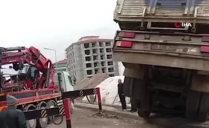 Ankara Beypazarı'nda kamyonun fren arızası sonrası devrilmesi