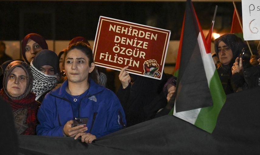 Ankara Filistin Dayanışma Platformu (ANFİDAP) üyelerince, "Soykırımın suçlusu ABD'ye lanet ve kunut duası" temasıyla ABD'nin Ankara Büyükelçiliği önünde protesto düzenlendi. Çukurambar'daki Üçgen Park'ta toplanan platform üyeleri, akşam namazını kılıp dua ettikten sonra, İsrail ve ABD karşıtı sloganlar attı.