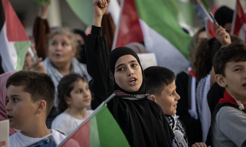 Başkentte, Filistin'e ve Küresel Sumud Filosu'na destek için basın açıklaması yapıldı. Ankara Filistin Dayanışma Platformu (ANFİDAP) öncülüğünde, sivil toplum kuruluşu üyeleri ve diğer katılımcılar Melike Hatun Camisi önünde toplandı.