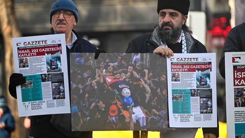 Ankara'da, 10 Ocak Çalışan Gazeteciler Günü'nde Filistin'deki saldırılarda hayatını kaybeden gazeteciler anıldı.