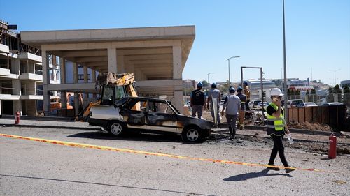 Pursaklar'da inşaat sahasında meydana gelen doğal gaz kaçağı yangını kontrolden çıkarken, bir otomobil kullanılamaz hale geldi.