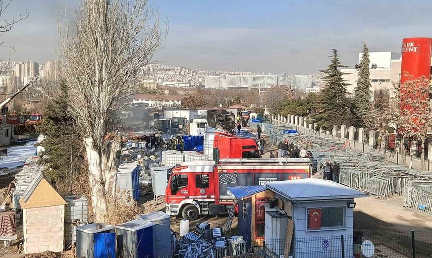 Ankara'nın Yenimahalle ilçesinde bulunan Ankara Emniyet Müdürlüğü Yediemin Otoparkında park halinde duran alkol yüklü tırlarda yangın çıktı.