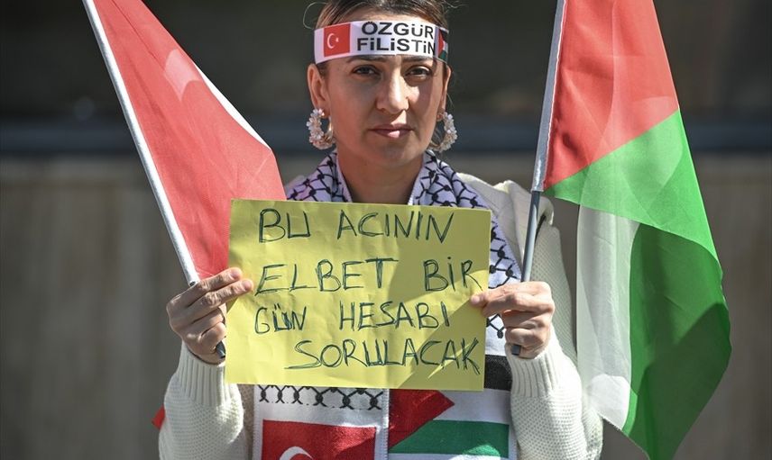 Ankara'da AK Parti İl Kadın Kolları tarafından, Gazze'deki zulme dikkati çekmek amacıyla 'Gazze İçin Sessiz Çığlık' etkinliği düzenlendi. AK Parti Genel Merkez Kadın Kolları Başkanlığının koordinasyonunda 81 ilde eş zamanlı olarak gerçekleştirilen etkinlik kapsamında toplanan kadınlar, İsrail Büyükelçiliği önünde bir araya geldi.