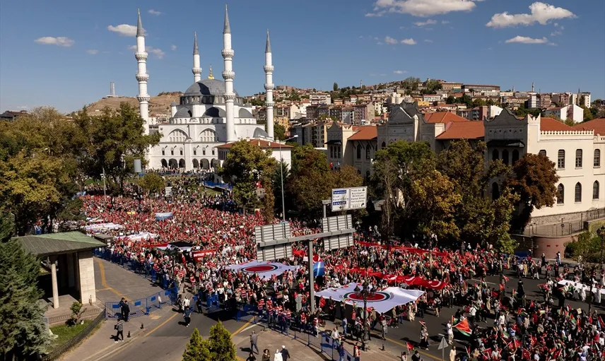 Katılımcılar Melike Hatun Camisi önünde toplandı. Yürüyüşe Ulaştırma ve Altyapı Bakanı Abdulkadir Uraloğlu, bazı milletvekilleri ile Ankara Valisi Vasip Şahin de katılarak destek verdi. Ellerinde Filistin bayraklarıyla ilerleyen kalabalık, İsrail aleyhine sloganlar attı ve 'Bir adım ötede insanlık ölüyor, kahrolsun İsrail' ile 'Müslümanlar birleşin' yazılı pankartlar taşıdı.