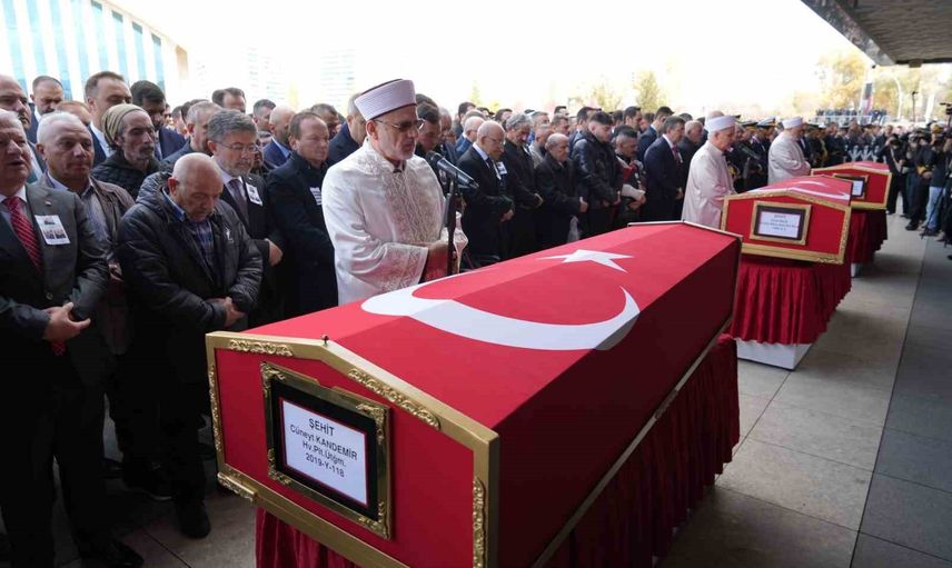 Cenaze namazı, Ahmet Hamdi Akseki Camii'nde cuma namazını müteakip kılındı. Namazın ardından Hava Pilot Üsteğmen Cüneyt Kandemir'in cenazesi defnedilmek üzere Gölbaşı, Ballıkpınar Mezarlığı'na; Hava Uçak Bakım Astsubay Kıdemli Başçavuş Ümit İnce ve Hava Ulaştırma Uzman Çavuş Cem Dolapcı'nın cenazeleri ise Cebeci Şehitliği'ne götürüldü.