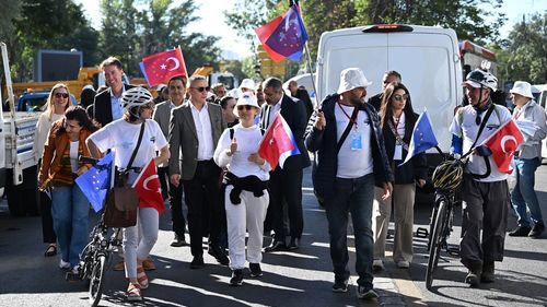AB Türkiye Delegasyonu, ABB ve TBB işbirliğiyle düzenlenen 'Herkes İçin Ulaşım' yürüyüşü kapsamında Aşkabat Caddesi, Otomobilsiz Kent Günü nedeniyle 20.00'ye kadar trafiğe kapatıldı.