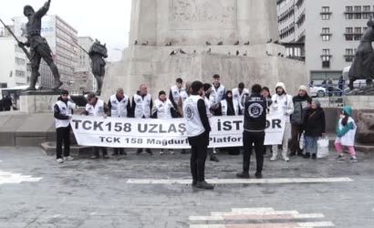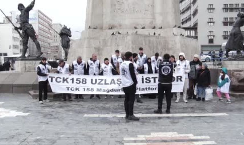 TCK 158 Mağdurları Platformu üyeleri, Ankara'nın Ulus semtinde Atatürk heykeli önünde bir araya gelerek basın açıklaması yaptı. Platform Başkanı İlyas Ataş, 81 ilden gelen heyetlerle bulunduklarını ifade etti.