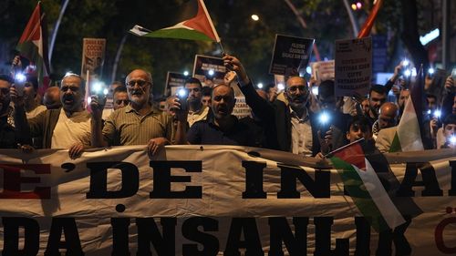 Ankara'da Gazze İçin Yürüyüş Düzenlendi Başkent Ankara'da, Filistin Dayanışma Platformu (ANFİDAP) üyeleri, İsrail'in Gazze'ye yönelik saldırılarını protesto etmek amacıyla Kocatepe Camisi'nden Sıhhiye Meydanı'na yürüyüş gerçekleştirdi. “Tek Gündemimiz Gazze” temasıyla yapılan çağrı üzerine akşam saatlerinde çok sayıda katılımcı, Kocatepe Camisi önünde…