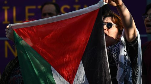 Başkent Ankara'da, İsrail'in 'Madleen' gemisine yönelik saldırıya karşı protesto gösterisi düzenlendi.