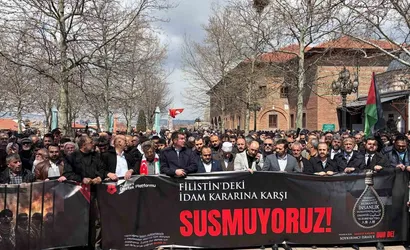 Filistin'e Destek Platformu, Ankara'da Hacı Bayram-ı Veli Camii avlusunda cuma namazı çıkışı düzenlenen eylemle İsrail'in idam kararını protesto etti.
