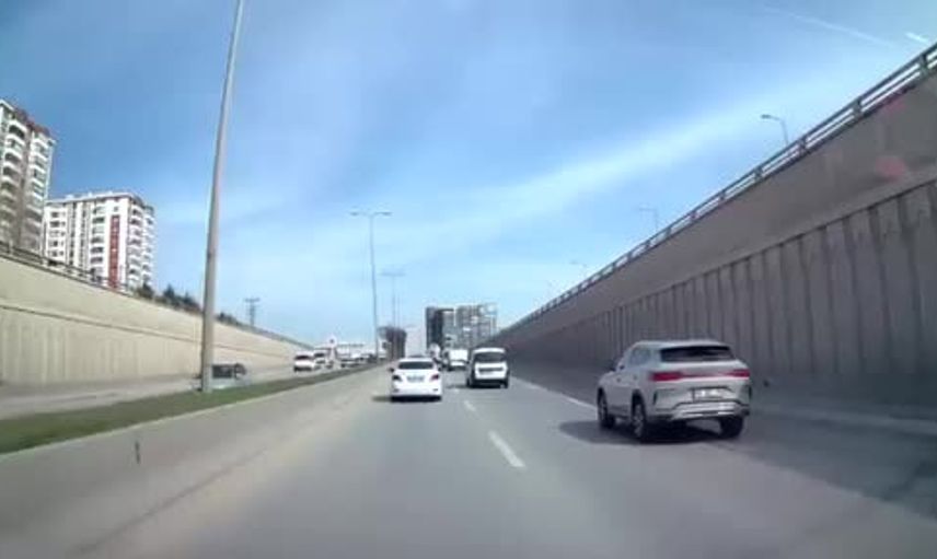 Ankara'da trafikte makas atarak ilerleyen 06 DCN 283 plakalı otomobil, kontrolünü kaybederek aynı istikamette seyir halinde olan 06 BGE 797 plakalı hafif ticari araca arkadan çarptı. Çarpmanın etkisiyle hafif ticari araç önce bariyerlere çarptı, ardından devrildi.