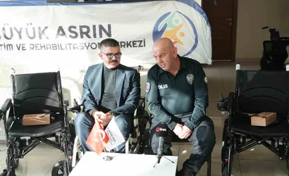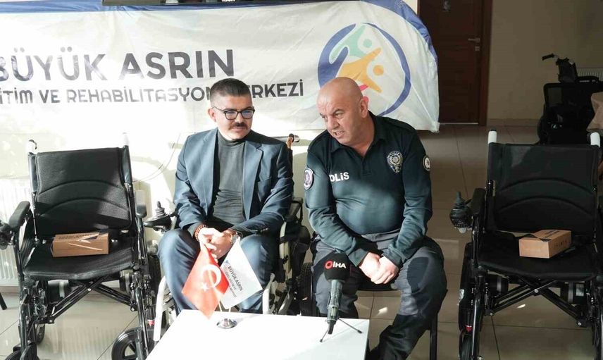 Polis memuru Mustafa Şahin ile Umuda Yürüyenler Derneği iş birliği, 3 Aralık Dünya Engelliler Günü kapsamında Özel Ankara Asrın Özel Eğitim ve Rehabilitasyon Merkezi'nde anlamlı bir bağış etkinliği düzenledi. Etkinlikte merkezde tedavi gören 8 engelli bireye akülü sandalye verildi.