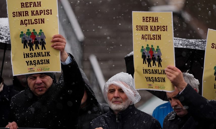 Ankara Filistin Dayanışma Platformu (ANFİDAP) üyeleri, Refah Sınır Kapısı'nın açılması talebiyle Mısır'ın Ankara Büyükelçiliği önünde protesto düzenledi. Etkinlikte, 'Kapılar açılsın, yardımlar ulaşsın', 'Sınırlar açılsın, Gazze yaşasın', 'Gazze'de insani kriz sona erdirilsin' ve 'Refah Sınır Kapısı açılsın' yazılı pankart ve dövizler taşındı.