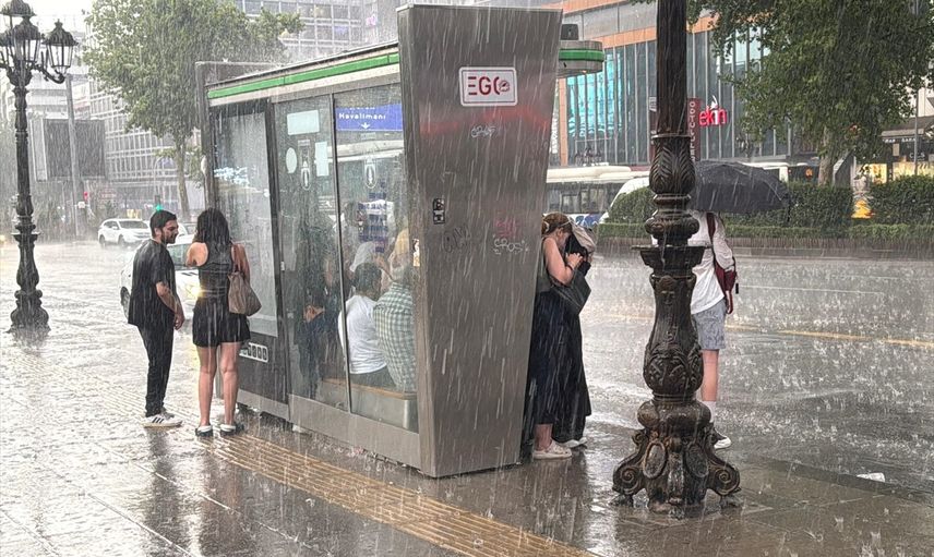 Ankara'da akşam saatlerinde başlayan sağanak, 15 Temmuz Kızılay Milli İrade Meydanı'nda da etkisini gösterdi. Yağış nedeniyle bazı vatandaşlar otobüs durağına sığındı.