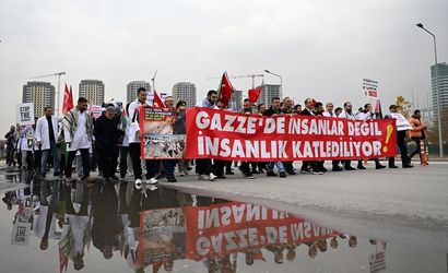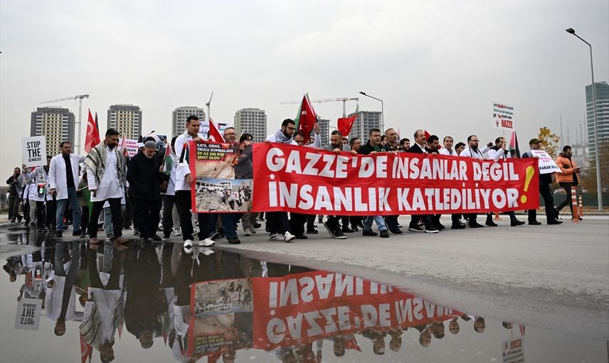Ankara'da, Uluslararası Sağlık İnisiyatifi tarafından düzenlenen yürüyüşte, Gazze'ye 'tıbbi koridor' açılması talep edildi. Etlik Şehir Hastanesi önünde gerçekleşen etkinlikte, çeşitli şehirlerden gelen sağlık çalışanları, Ankara İl Sağlık Müdürlüğü'nden yürüyüşe geçti.