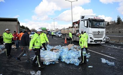 Kazanın hemen ardından kamyondan yola savrulan su şişeleri, Karayolları ve trafik ekiplerince toplandı. Su yüklü kamyonun sürücüsü İbrahim D., 'Aracım yüklü olduğu için frenim tutmadı. Öndeki araçlara çarpmamak için manevra yapınca devrildi.' şeklinde bilgi verdi.