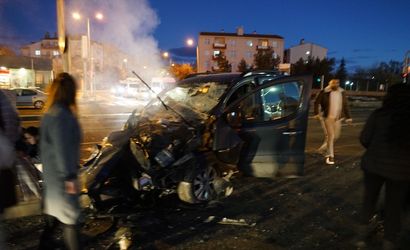 Ankara’nın Polatlı ilçesinde meydana gelen trafik kazasında, 1'i ağır toplam 9 kişi yaralandı. Edinilen bilgilere göre, Refik Cesur Caddesi'nde E-90 kara yoluna çıkmakta olan Ali Kaya’nın kullandığı 06 S 70067 plakalı okul servis aracı, Ankara istikametinden gelen Vasfi Acar’a ait 20 LG 907 plakalı hafif ticari araç tarafından sol taraftan çarpıldı. Çarpmanın etkisiyle hafif ticari araç, hızını alamayarak refüjdeki trafik tabelasına çarparak durabildi.