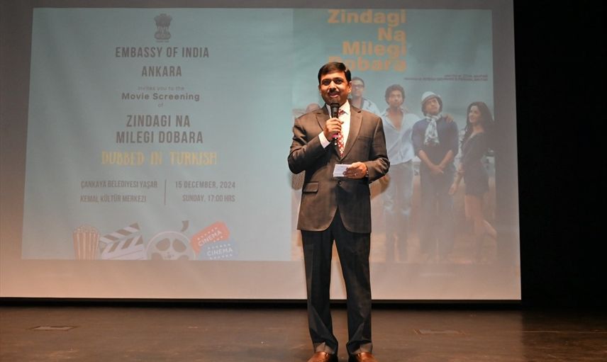 Hindistan'ın Ankara Büyükelçiliği tarafından, kamu diplomasisi faaliyetleri kapsamında, ödüllü "Zindagi Na Milegi Dobara (Hayat Sadece Bir Kere Yaşanır)" filminin gösterimi, Çankaya Belediyesi Yaşar Kemal Kültür Merkezi'nde yapıldı. Davetlileri, Hindistan'ın yeni atanan Ankara Büyükelçisi Muktesh Pardeshi (sağda) karşıladı.