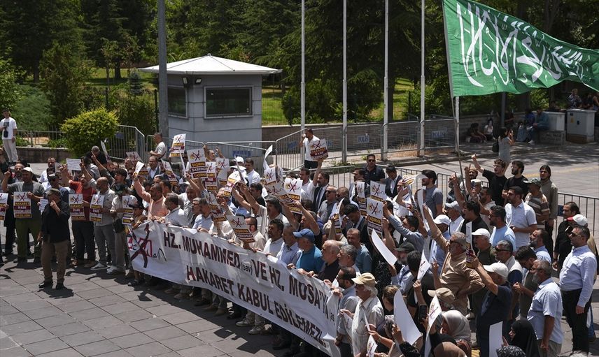 Ankara İnanç Özgürlüğü Platformu üyeleri, Hazreti Muhammed'in karikatür çizimini yayımlayan Leman dergisine yönelik suç duyurusunda bulundu. Ankara Adliyesi önünde toplanan platform üyeleri, "Hakaret ifade özgürlüğü değildir" yazılı pankartlar açarak, sloganlar attı.