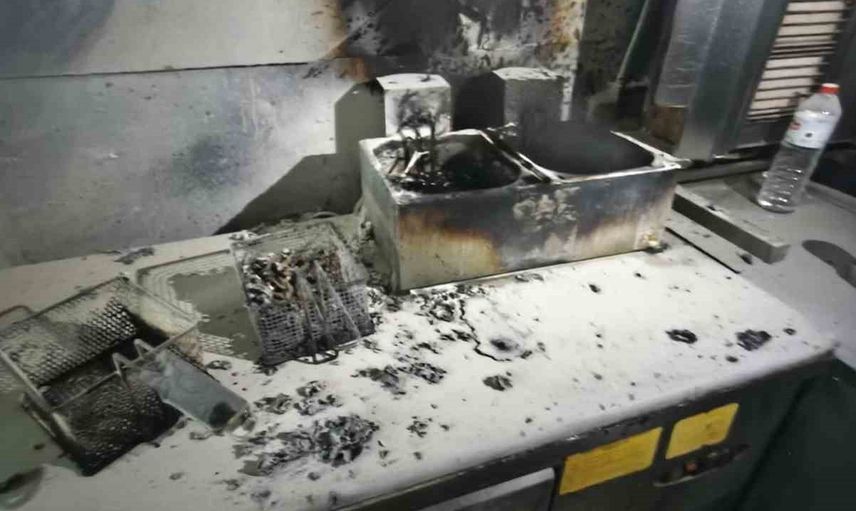 Hatay'ın Antakya ilçesi Büyükdalyan Mahallesindeki bir dönercide, iş yerinde bulunan kızartma makinesi alevlere teslim oldu.