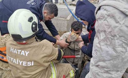 Antakya'da şantiyedeki açık kuyuya düşen vatandaş itfaiye tarafından kurtarıldı