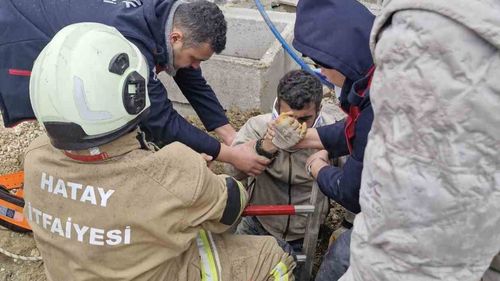Antakya'da şantiyedeki açık kuyuya düşen vatandaş itfaiye tarafından kurtarıldı