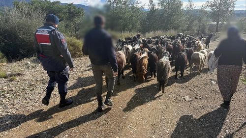 Antalya Aksu'da yağışta kaybolan 55 küçükbaş hayvan jandarma tarafından bulundu