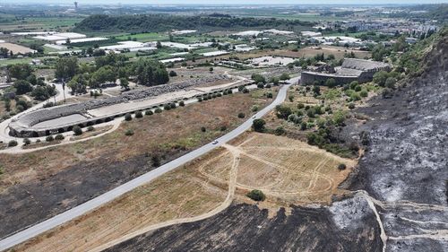 Antalya'nın Aksu ilçesinde kontrol altına alınan orman yangını sonrası zarar gören alanlar havadan görüntülendi.