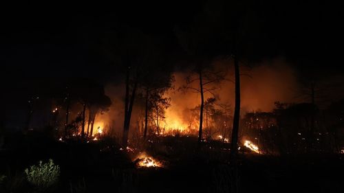 Antalya'nın Aksu ilçesi Kumköy Mahallesi'nde orman yangını çıktı; Orman Bölge Müdürlüğü ve Antalya Büyükşehir Belediyesi itfaiye ekipleri müdahaleye devam ediyor.