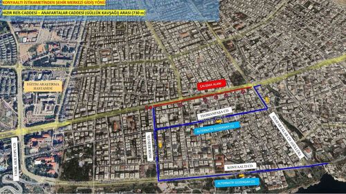 Antalya Büyükşehir, 100. Yıl Bulvarı'ndaki Hızır Reis–Anafartalar arasındaki yaklaşık 730 m'lik yolu 12 Nisan Pazar 07.00'de kapatıp 13 Nisan Pazartesi 06.00'da yeniden açmayı planlıyor.