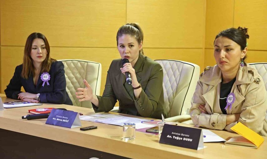 Antalya Barosu Avukatları Tuğçe Duru ve Meva Ekici, hukuk çerçevesinde 6284 sayılı yasanın kadınların yaşam hakkını ve mağdurların korunmasını güvence altına alan temel mevzuat olduğuna dikkat çekti; yasanın uygulanmasının ve mağdur yönlendirmelerinin önemine değindiler.