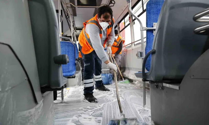 Seferini tamamlayan araçlarımızın temizliği her gün titizlikle gerçekleştiriliyor. Yolcularımızın temas ettiği tüm yüzeyler düzenli olarak dezenfekte ediliyor. Koltuklar, tutacaklar ve zeminler özel temizlik ürünleriyle ayrıntılı biçimde temizleniyor. Hijyen standartlarımızı yüksek tutuyoruz. Çünkü halkımızın sağlığı bizim için büyük önem taşıyor. Toplu taşıma ortak kullanım alanıdır. Biz üzerimize düşeni yaparken vatandaşlarımızdan da bu temizliğin korunması konusunda duyarlılık bekliyoruz.