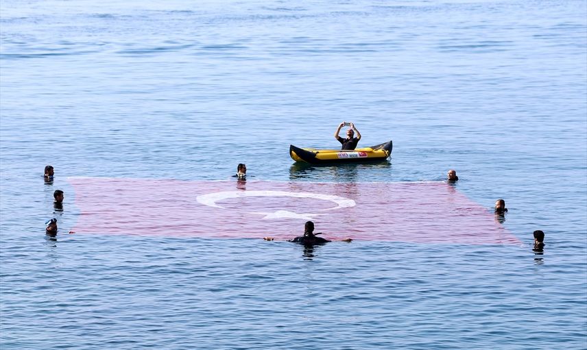 Kaleiçi Yat Limanı'nda yapılan etkinlikte, 10 kişilik dalgıç ekibi tarafından deniz yüzeyinde 9x16 metre ölçülerinde Türk bayrağı sergilendi. Etkinlik sonrasında su altında çeşitli organizasyonlar gerçekleştirildi.