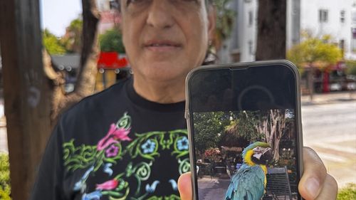 Konyaaltı'nda Metin Suna, 28 yıldır sahiplendiği papağan 'Cabbar'ın restoran kapısında kaybolduğunu belirterek polise başvurdu.