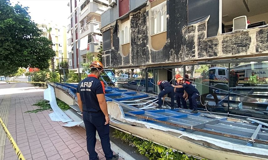 Antalya'da 5 katlı apartmanın reklam panolarının bulunduğu dış cephe kaplaması düştü. Bölgeye polis, AFAD ve itfaiye ekipleri sevk edildi.