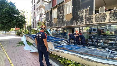 Antalya'da 5 katlı binanın reklam panolarını taşıyan dış cephe kaplaması düştü