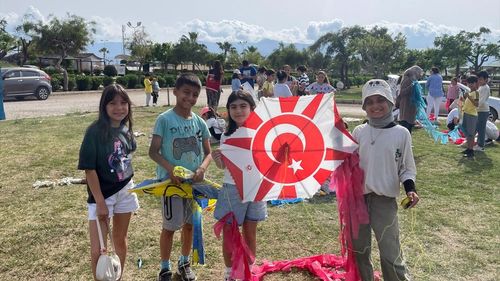 Kumluca'da gerçekleştirilen etkinlikte aileler, çocuklarıyla birlikte uçurtma uçurdu ve boyama aktivitelerine katıldı.