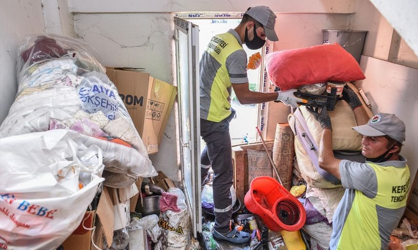 Yaklaşık 8 saat süren yoğun bir temizlik çalışması sonrasında, apartman dışına çıkarılan çöpler, iş makineleriyle 6 kamyona yüklendi. Temizlik işlemlerinin ardından, apartmanın haşerelerden korunması amacıyla ilaçlama da yapıldı.