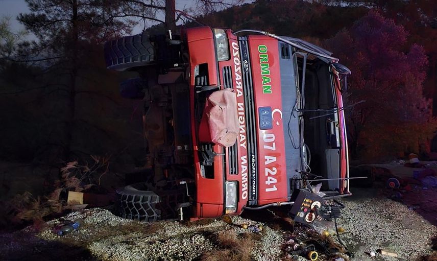 Antalya'da, Serik Orman İşletme Müdürlüğü Pınargözü İşletme Şefliği'ne ait arazöz, orman yangını ihbarı üzerine göreve giderken Haspınar Mahallesi'nde kontrolden çıkarak devrildi.