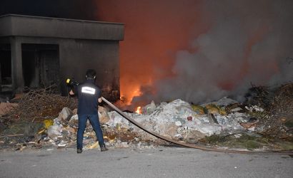 Antalya'nın Kepez ilçesinde, atıkların bulunduğu arazide çıkan yangına itfaiye ekiplerince müdahale ediliyor.